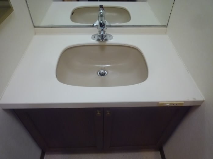 洗面台の上には鏡がついていて、鏡の部分を開くと中は洗面具などを収納できるようになっています!