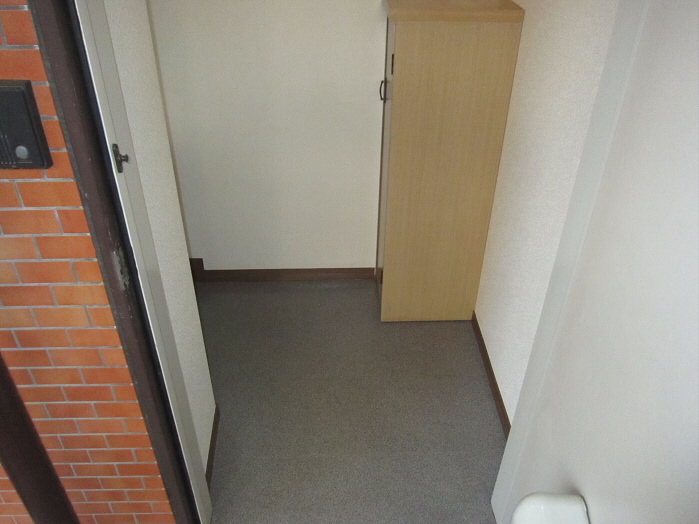 玄関です。本日ご紹介するお部屋は、2階の角部屋!