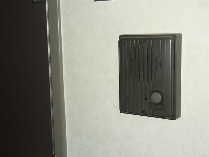 ドアの右側にはインターホンが付いています。