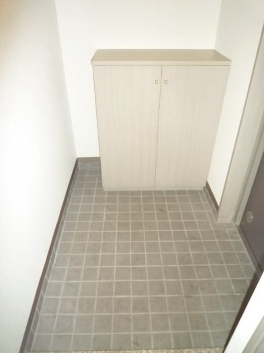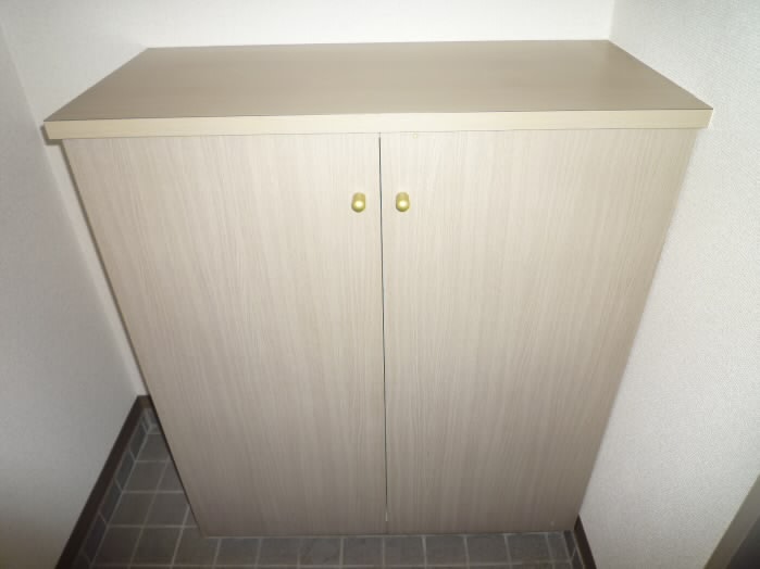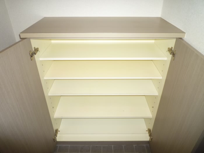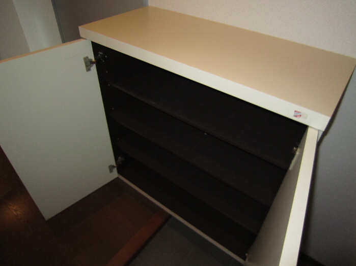 右側には、上に物が置けるタイプの下駄箱があります。