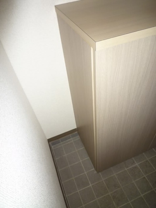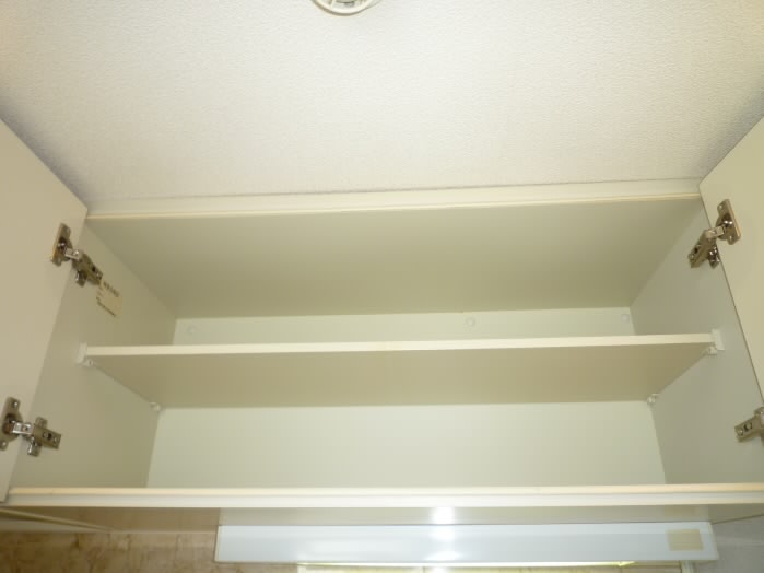 トイレの上には収納棚がありますので、トイレットペーパーや、