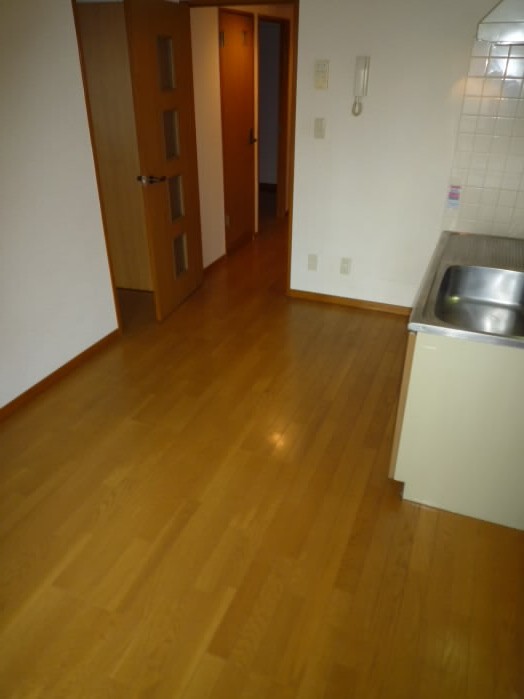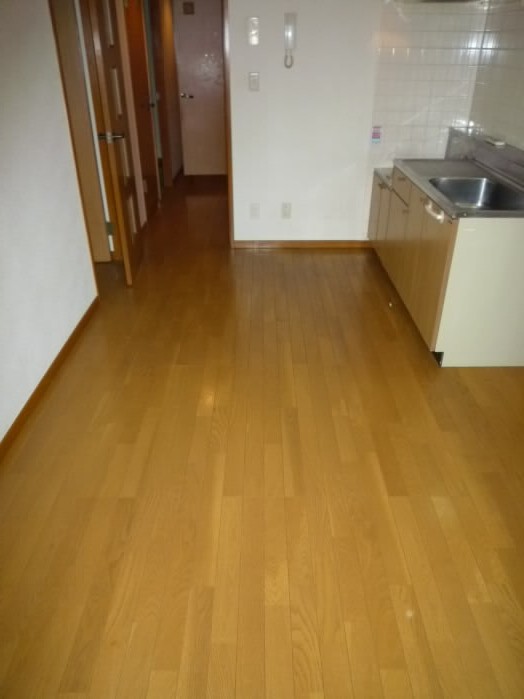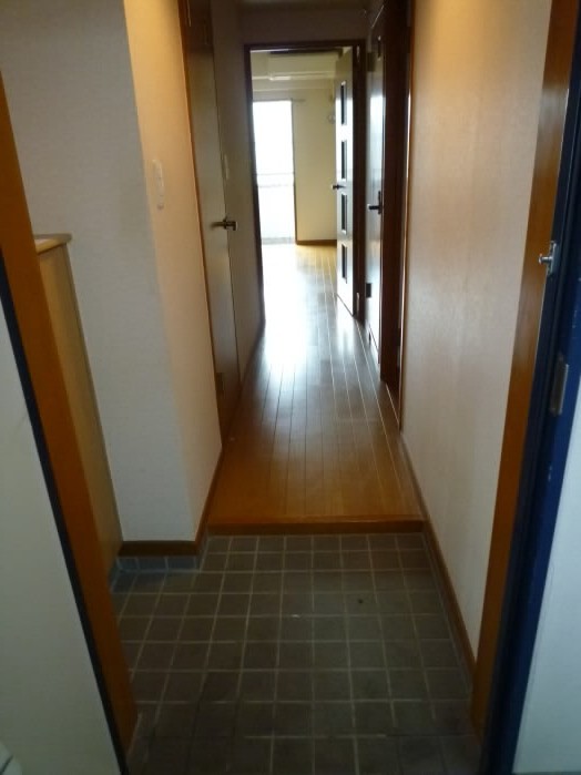 玄関からキッチンの壁紙は、青いお花柄になっています!