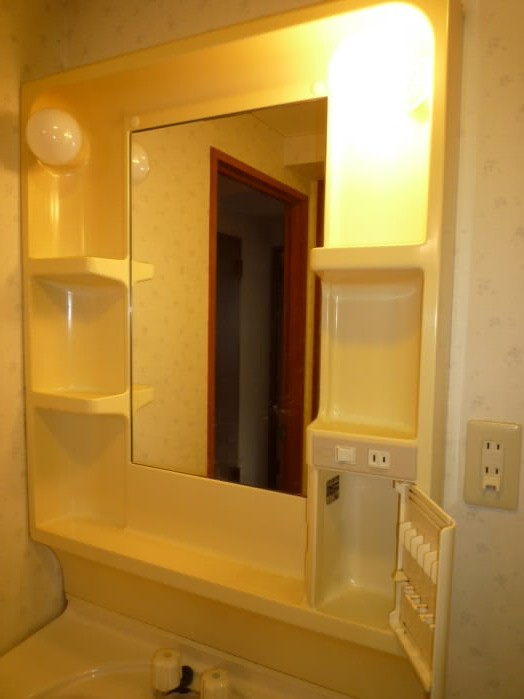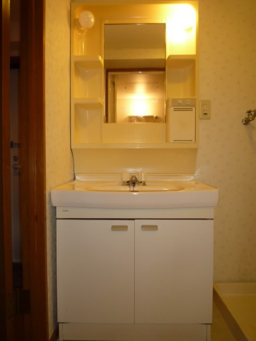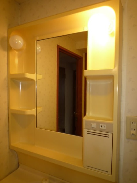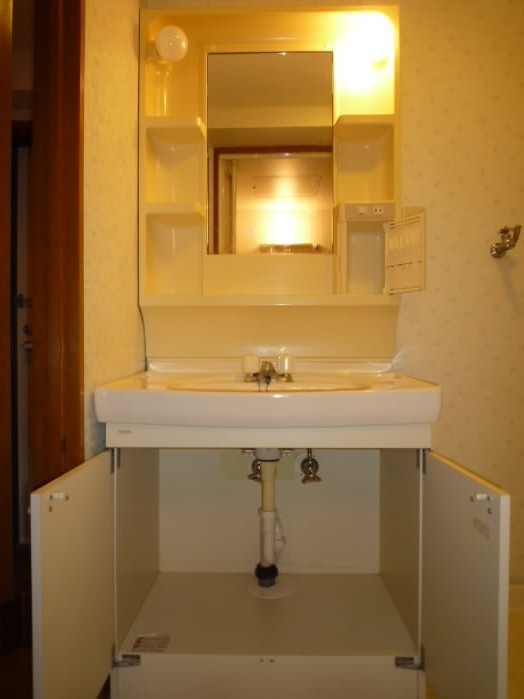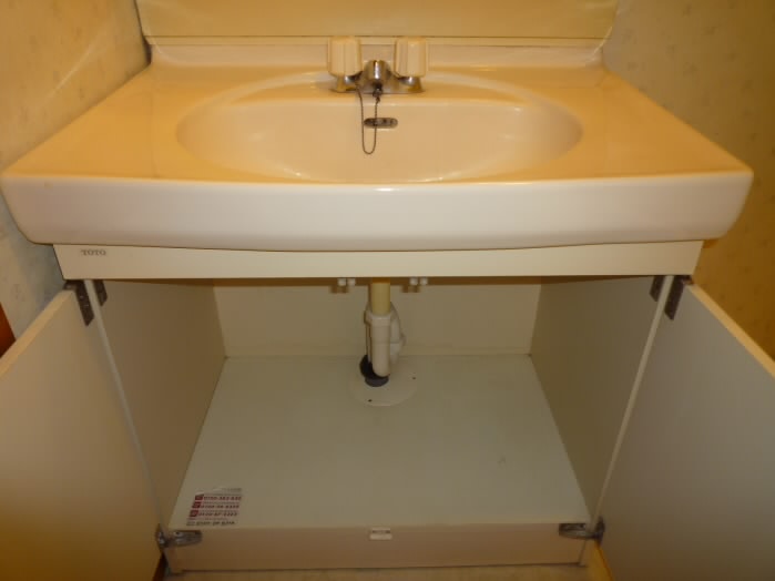 鏡の横と、洗面台の下に収納があるので、洗面用具や、