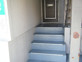 ④突き当りますと出口が見えてきますので階段を降ります。