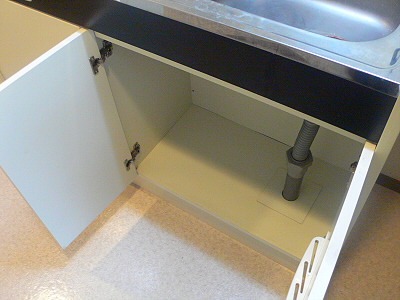 防水パンが付いているので、蛇口からの水や、