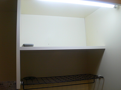 トイレの上には収納棚がありますので、トイレットペーパーや、