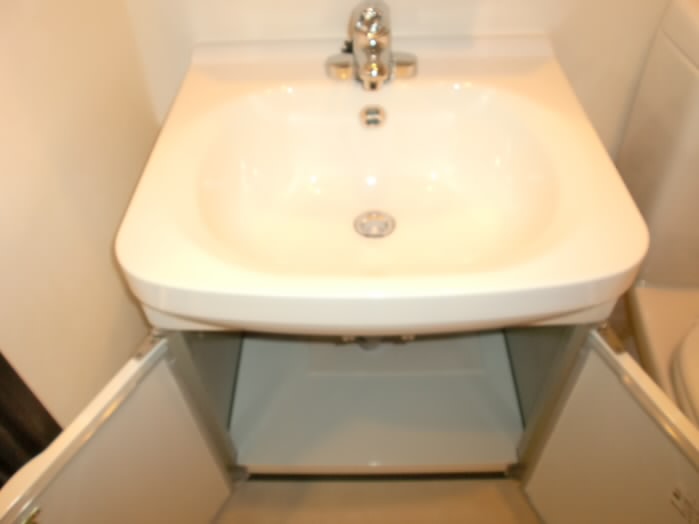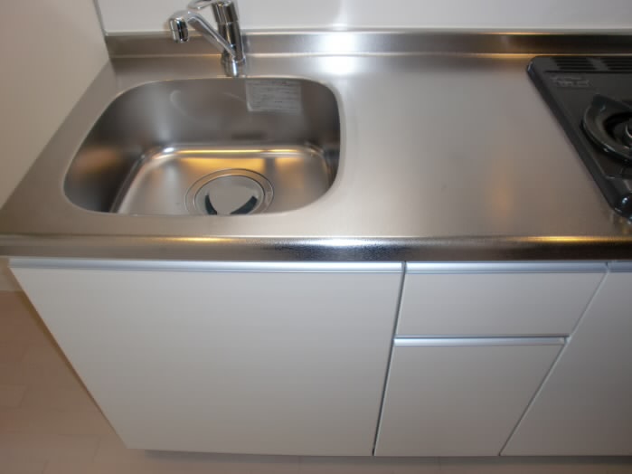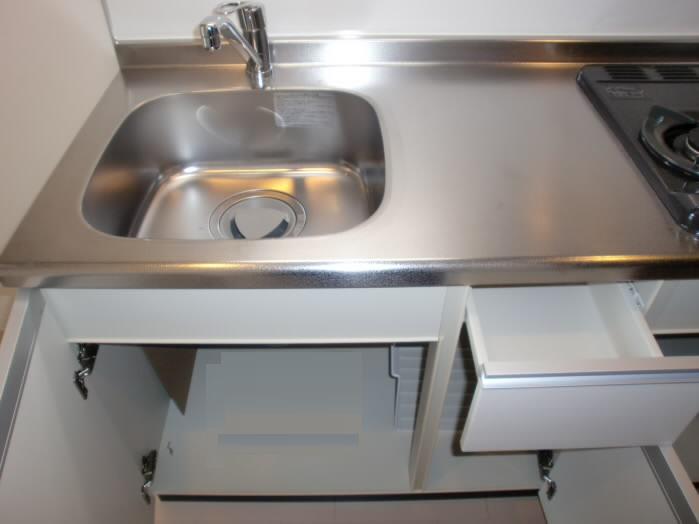 シンクの上下に大容量の収納を備えた