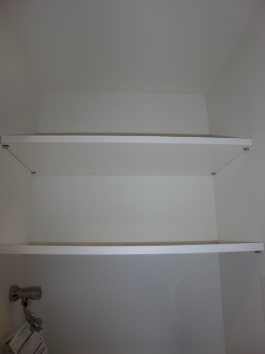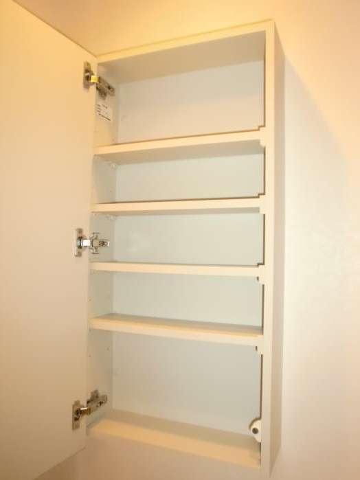 トイレの上には収納棚がありますので、トイレットペーパーや、