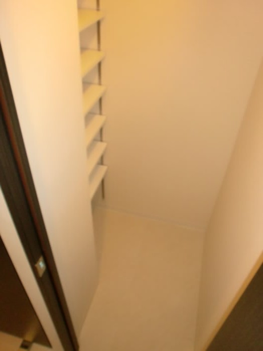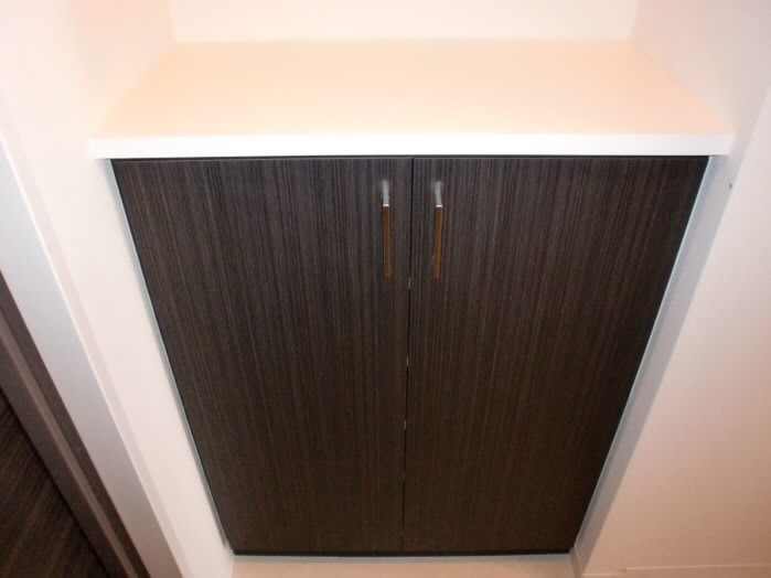 右側には、上に物が置けるタイプの下駄箱があります。