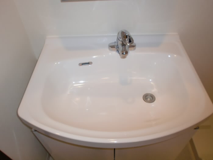 防水パンが付いているので、蛇口からの水や、