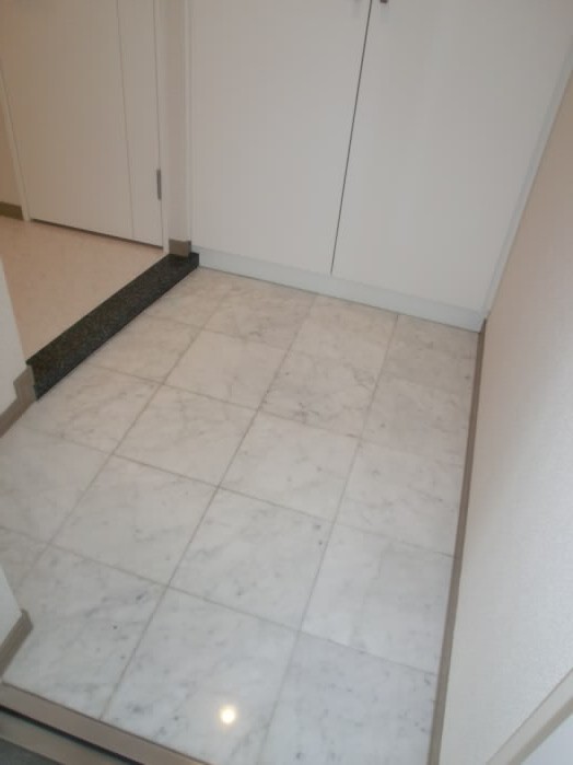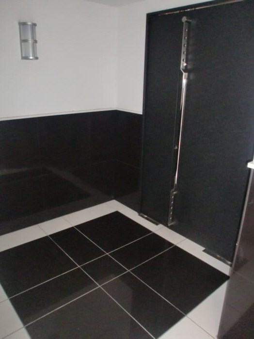 扉を開けると、ピッカピカの黒タイルの床が♪