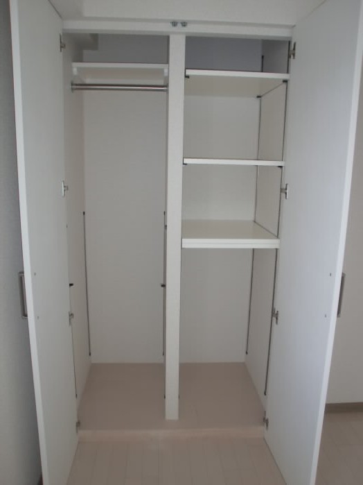 服を掛けられるポールと、高さ調節ができる棚でたっぷり収納できます!!