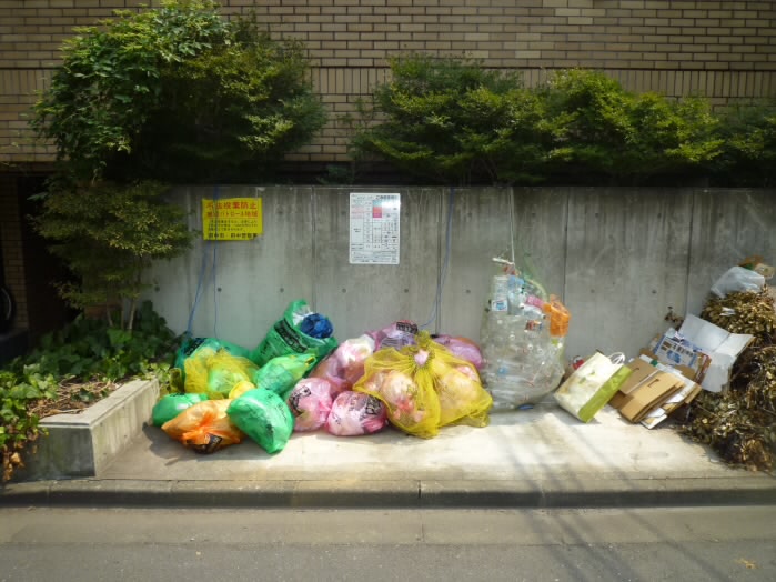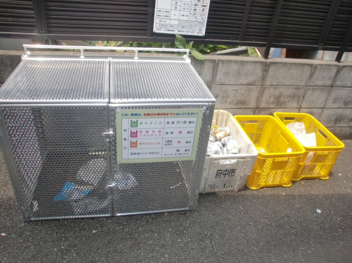 建物の前には、ゴミ置き場があります♪