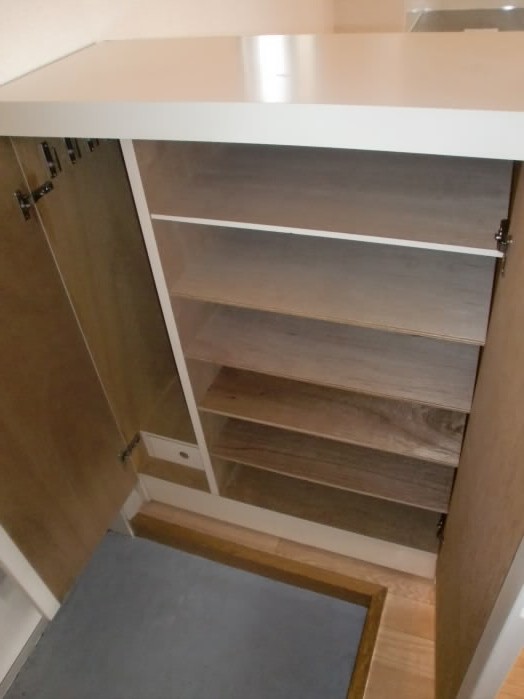 下駄箱を移して作業台を置いたりすれば、もっとキッチンが使いやすくなりますよ☆