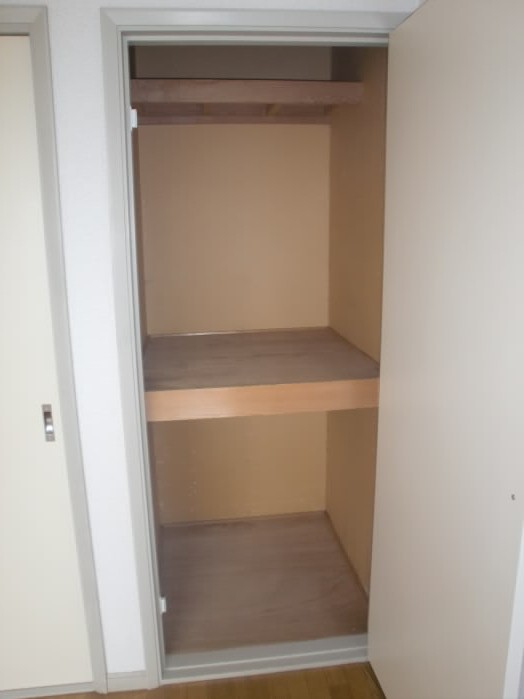 押入れタイプの収納なので、お布団も楽々入りますよ!3段に分かれているので、使用頻度に合わせて収納するなどして活用できます★
