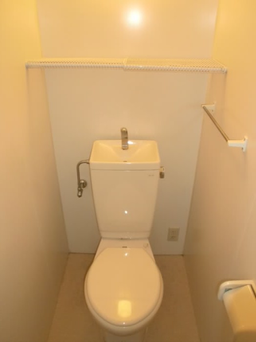 トイレの上には収納棚がありますので、トイレットペーパーや、