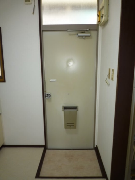 鍵穴が2つありました!!ドアの内側にはチェーンロックもついていますので、