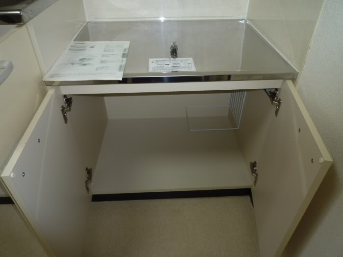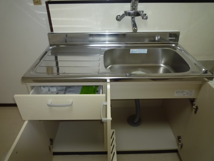 シンクの上下に大容量の収納を備えた
