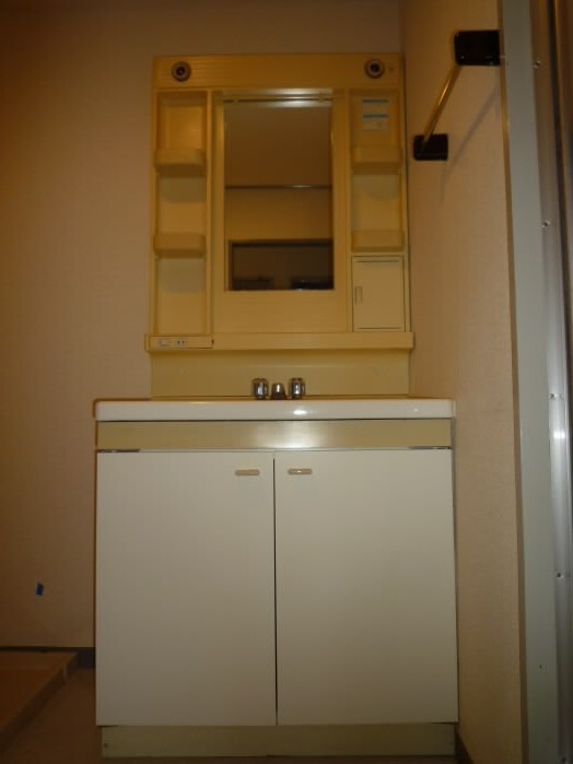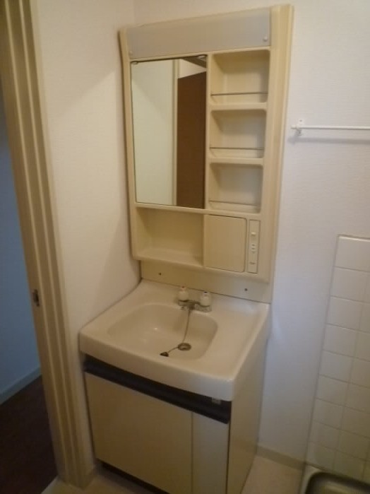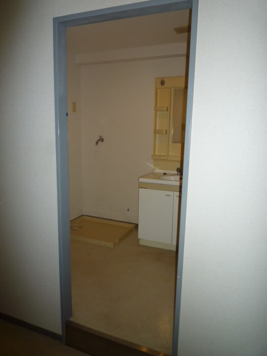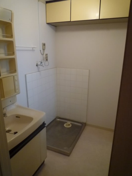 洗面台の斜め横には、室内洗濯機置き場があります♪