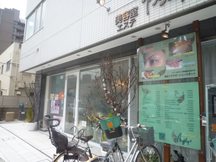 物件から右手に歩いて行くと、ゲームショップと美容院があります。