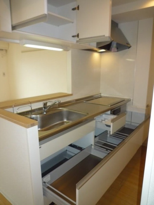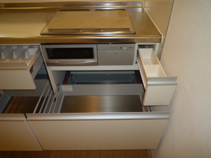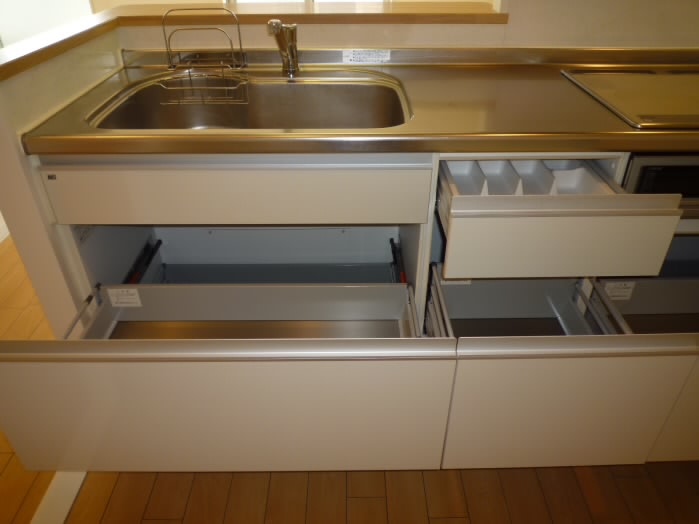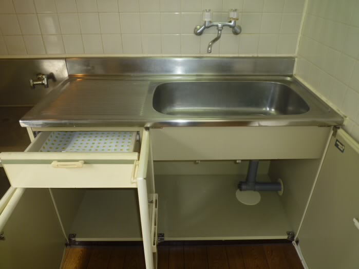 シンクの左側には、冷蔵庫を置くスペースがあります。