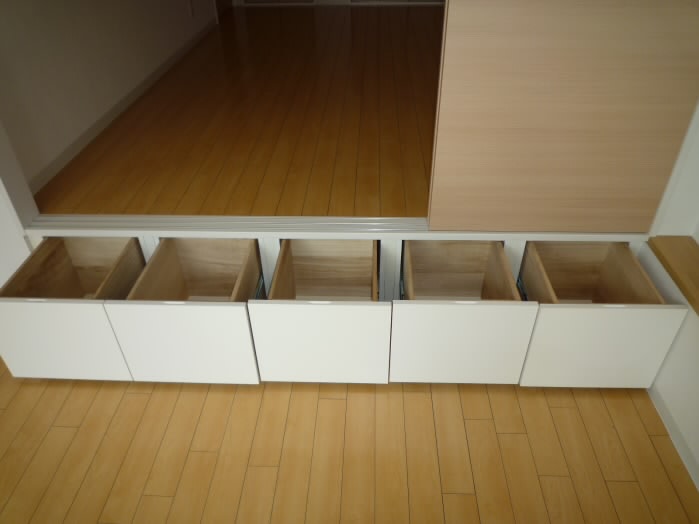 下にカラーボックスなどを置けば、収納がさらに増えますよ☆