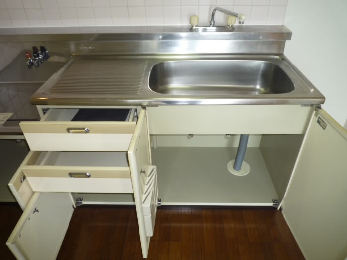 シンク下の収納は細かく区切られているので、調理器具も取り出しやすいですね★