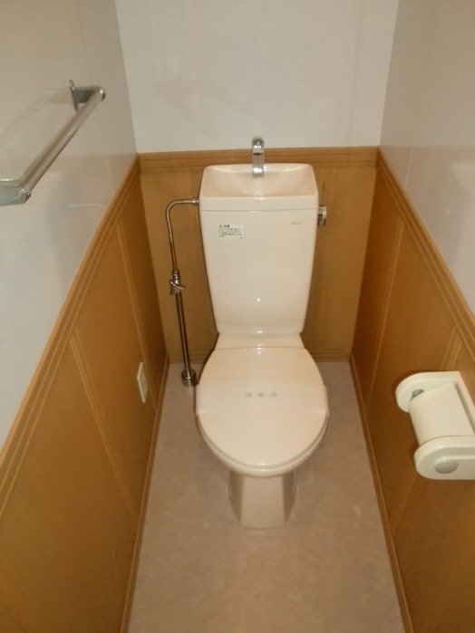 タオル掛けも付いているのでトイレで手も洗えますね♪