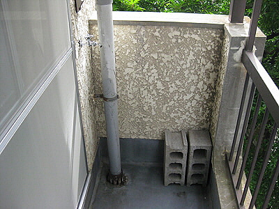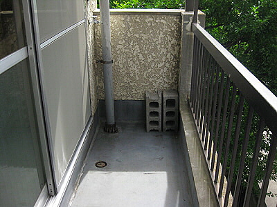 <ベランダ、エアコン>