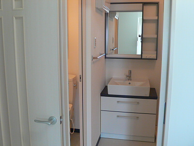 洗面台と、鏡が分かれていますが、お掃除も楽チンです☆