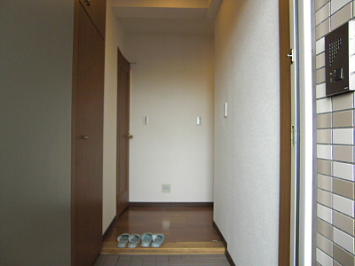 玄関前です!今日ご紹介するお部屋は9階なので眺望も最高ですよ!!
