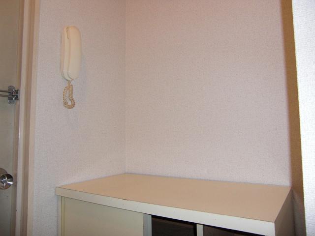 下駄箱の上にインターフォンがついていますので怪しいと思ったら、扉を開けずにインターフォンで相手の声を聞きながら外を覗いて確認しましょう。