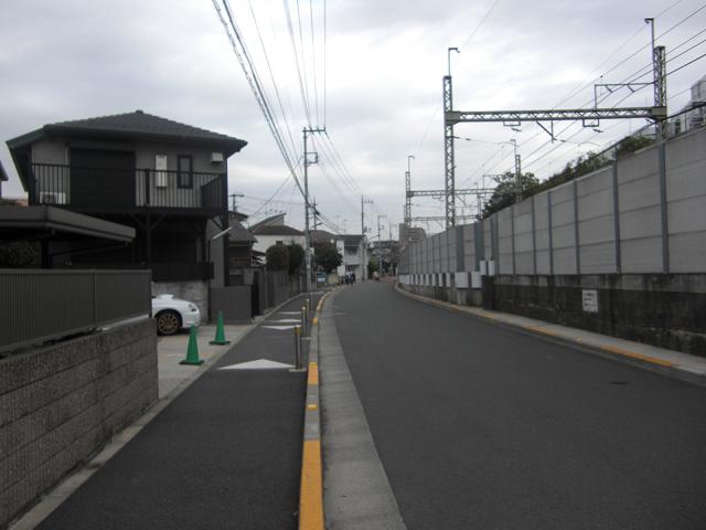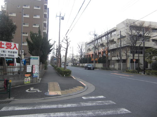 道路に出たらまず左に向かって歩きます。(左手に見えるのが物件です)