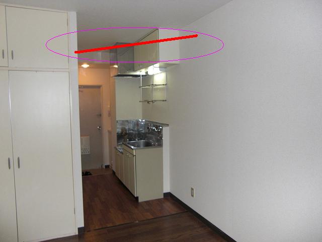 このように(赤い線)突っ張り棒を付ければカーテンをとりつけられるのでキッチンと洋室を分けることができます♪
