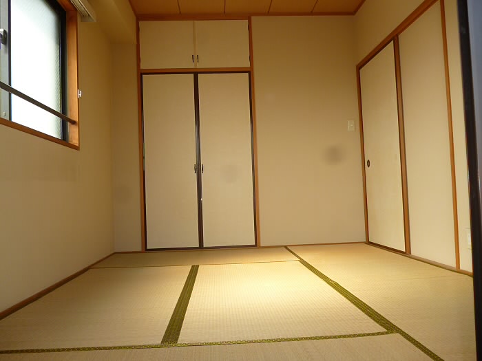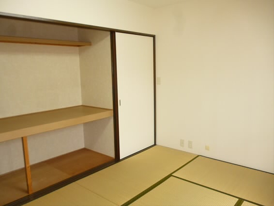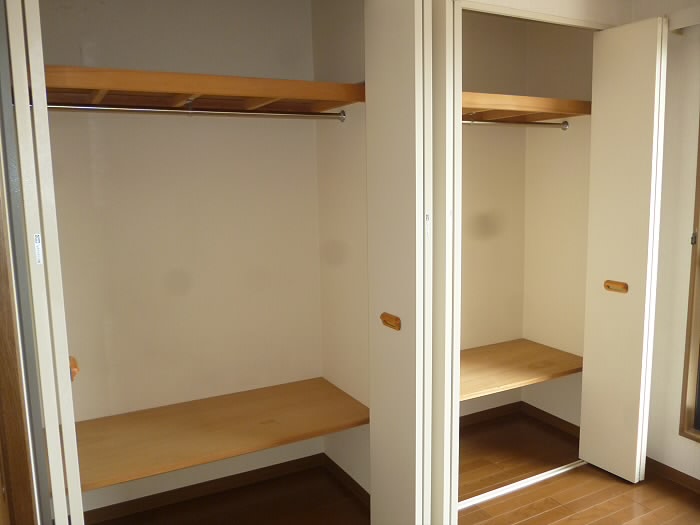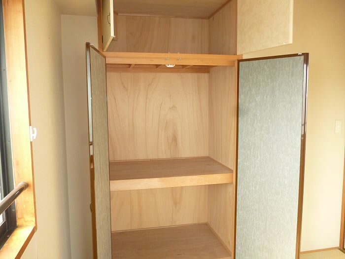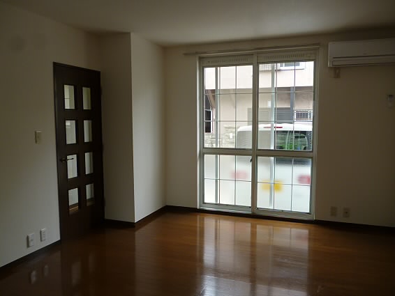 お部屋になります。収納スペースも広いですし、エアコンも完備されています。