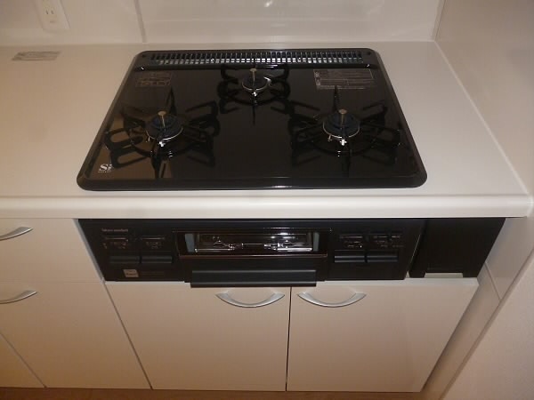 オートロック、追い焚き、浴室乾燥機、システムキッチン3口