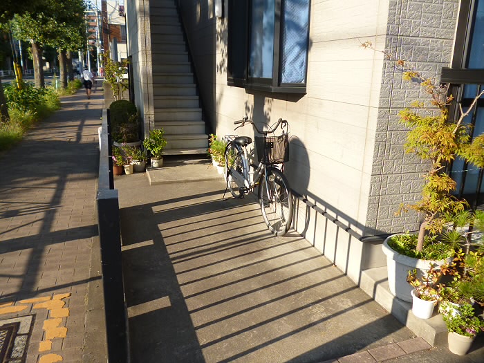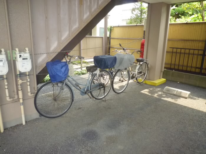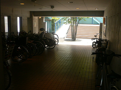 オートロックをくぐりぬけると自転車などが置いてありますね!