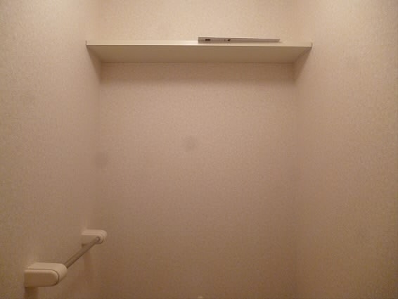 トイレの入り口の上には棚が付いているので、