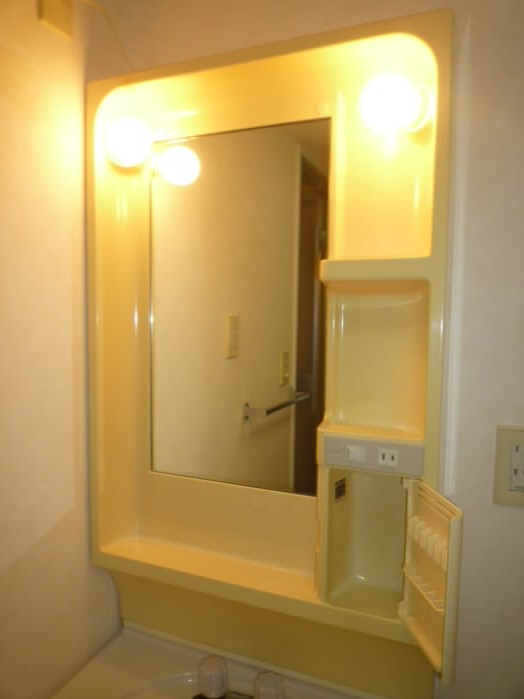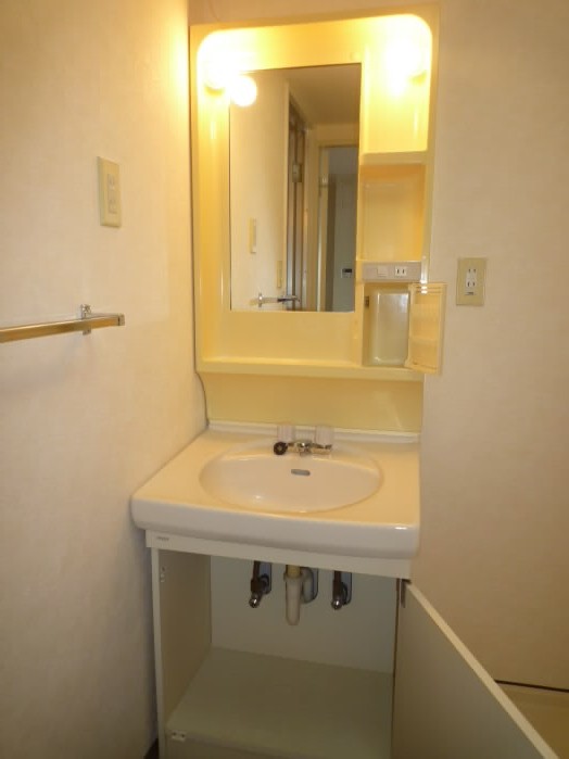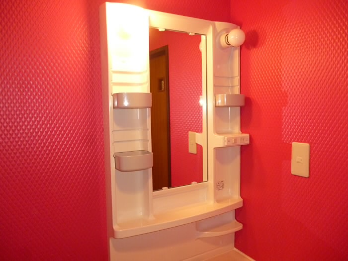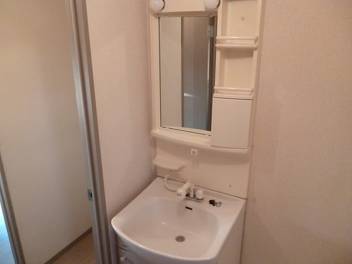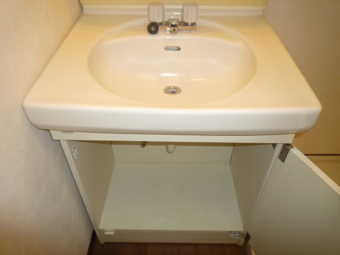 鏡の横と、洗面台の下に収納があるので、洗剤などの小物をしまって置く事が出来ます!
