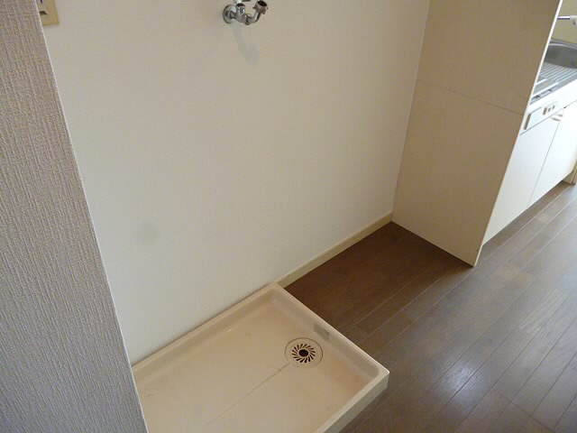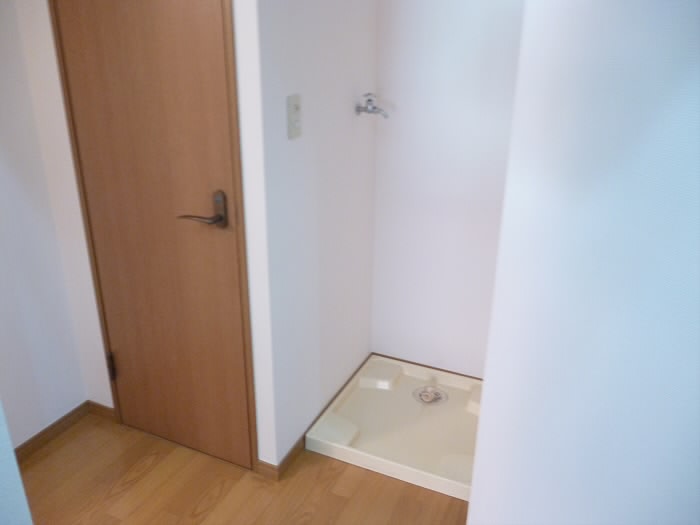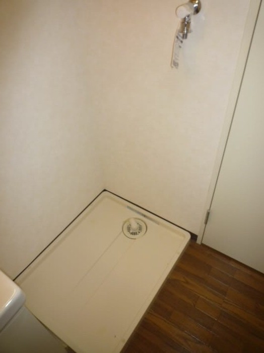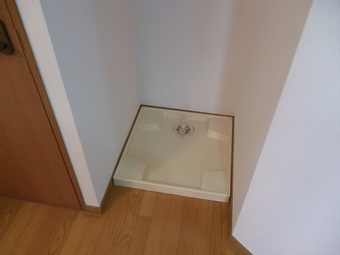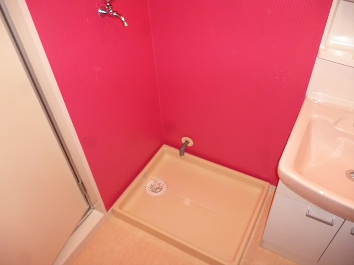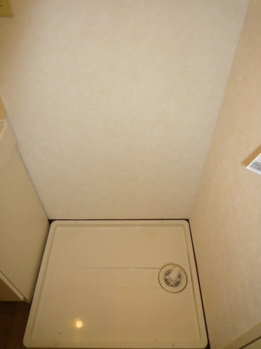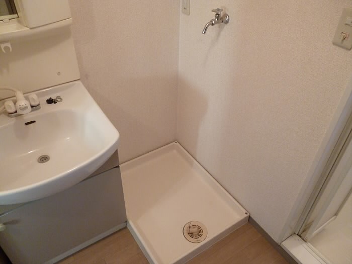 洗面台の右手側には、防水パン付きの洗濯機置き場があります。