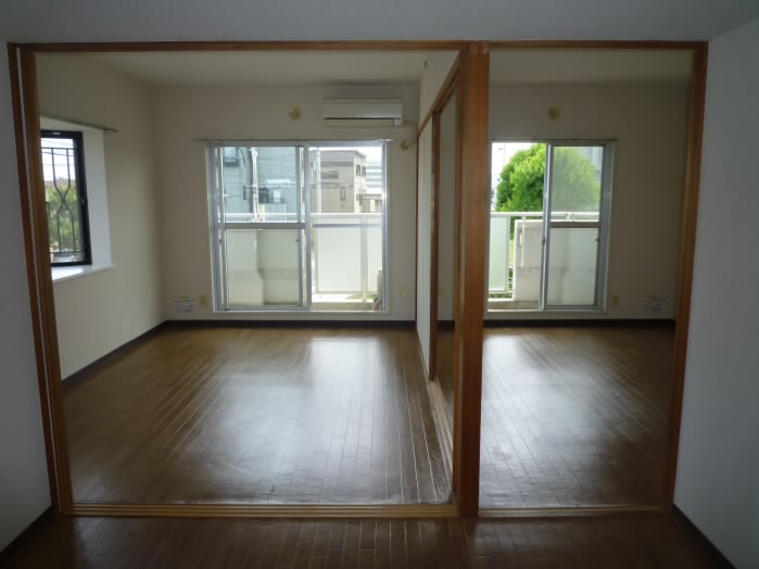 洋室とダイニングキッチンは仕切りを開け放したり、