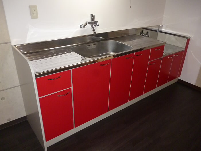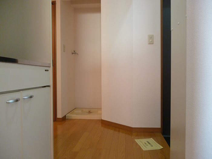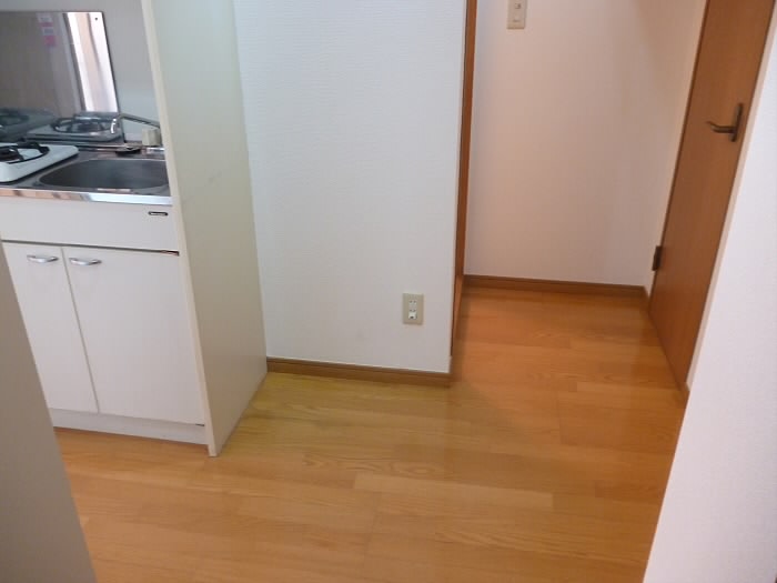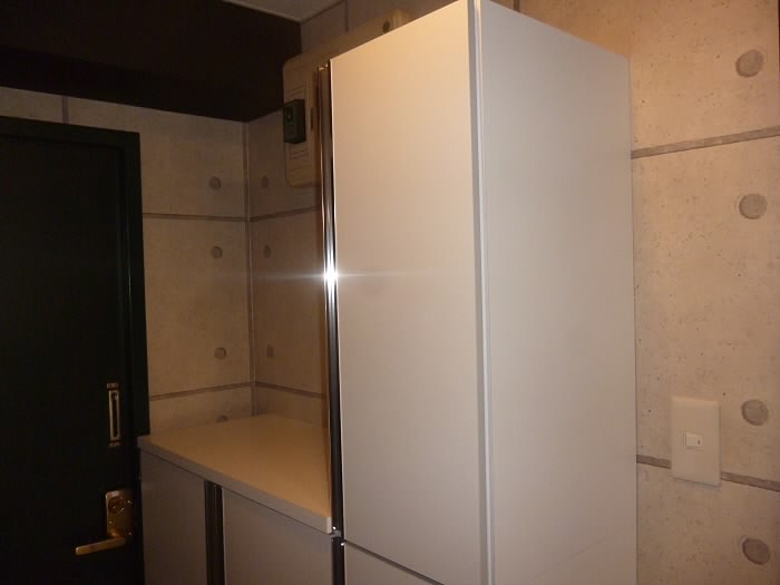 シンクの壁を挟んだ右側には、冷蔵庫を置けるスペースがあります。