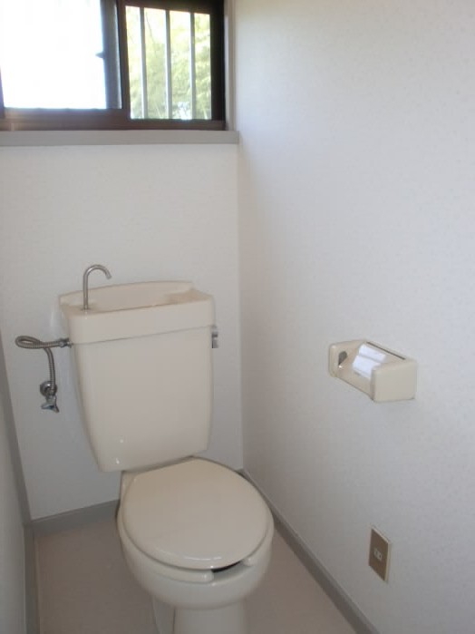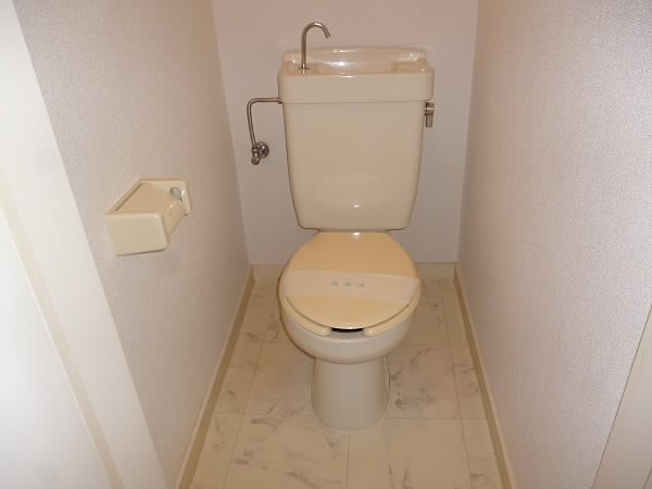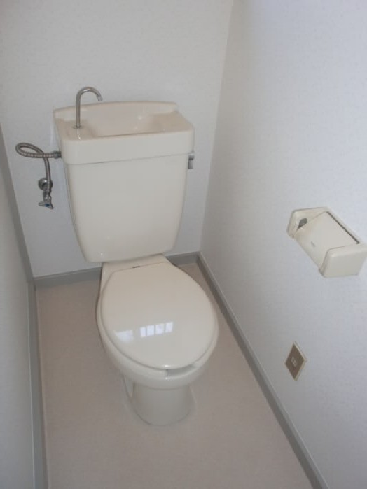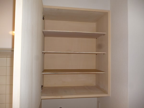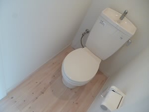 続いてトイレです。ゆったりとした造りで、小さい収納スペースも