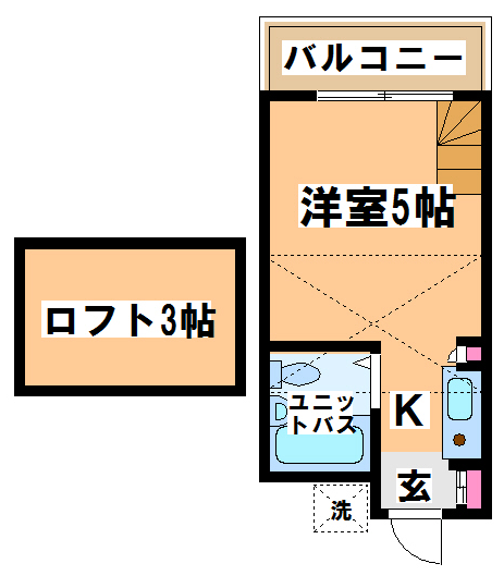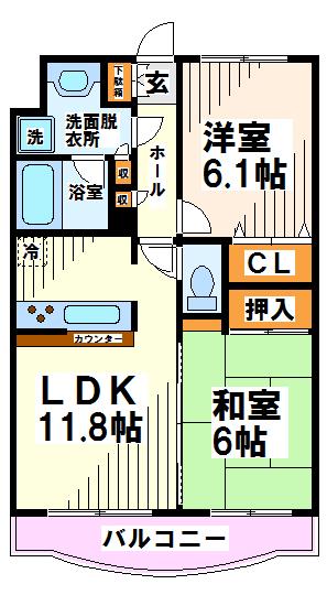 ◇間取り2DK (キッチン6帖 和室6帖 洋室4.8帖)ルーフバルコニー