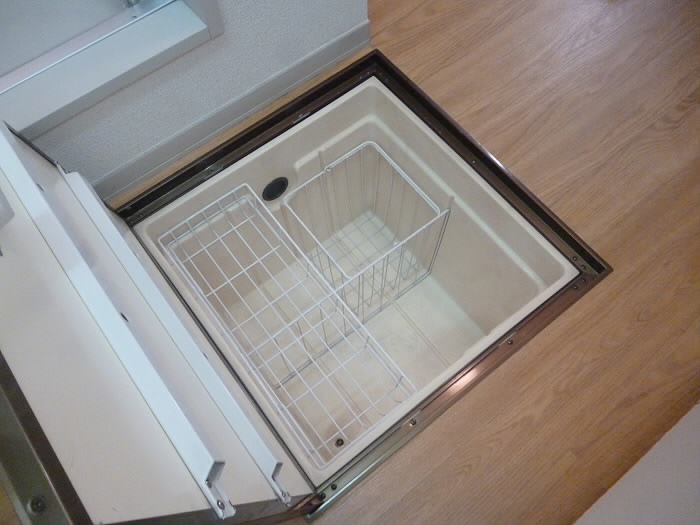 開けると下には棚が、上は空いているのでいろいろな使い方ができますよ♪