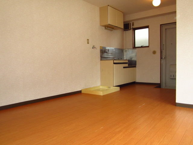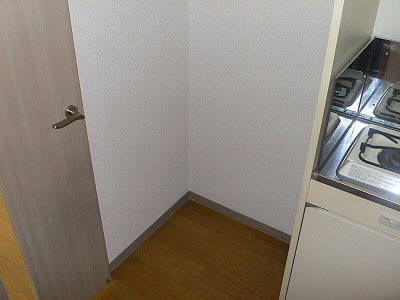 シンクの向かい側には、冷蔵庫を置くスペースがあります。