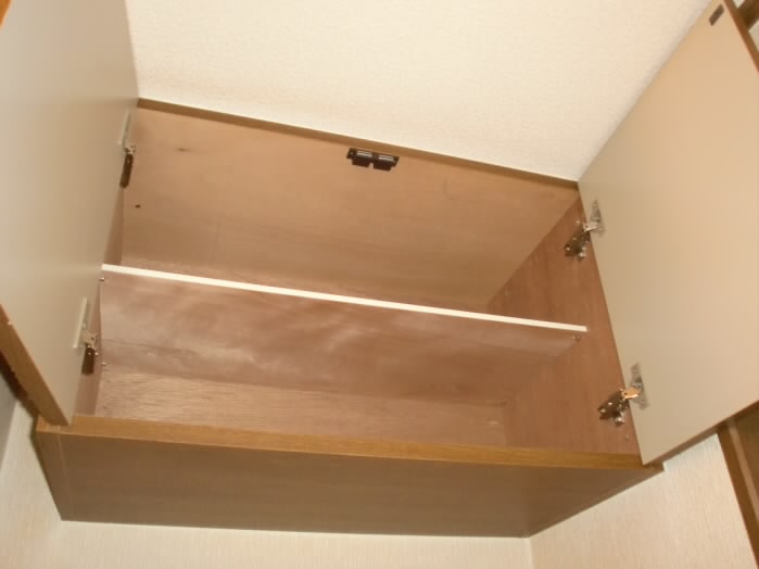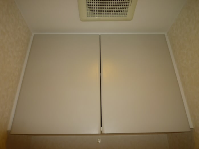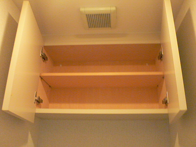 トイレの上には収納棚がありますので、トイレットペーパーや、