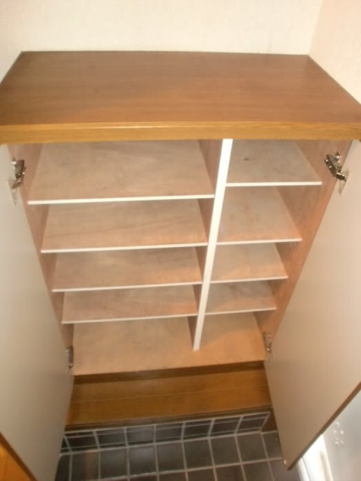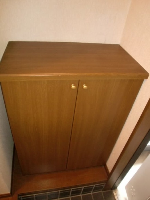 右側には、上に物が置けるタイプの下駄箱があります。