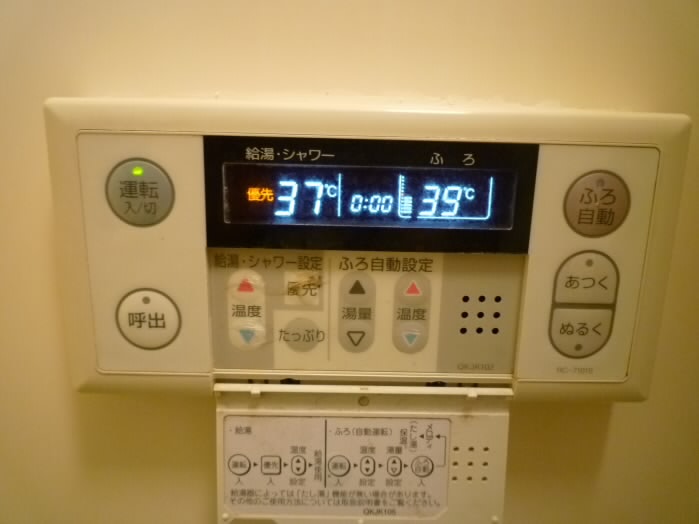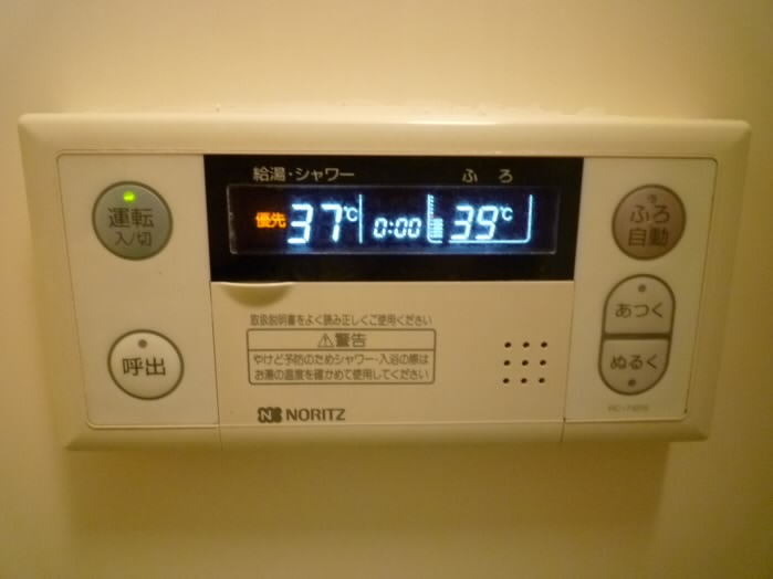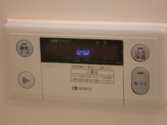 壁にはお風呂のスイッチが付いており、追い炊きはもちろん