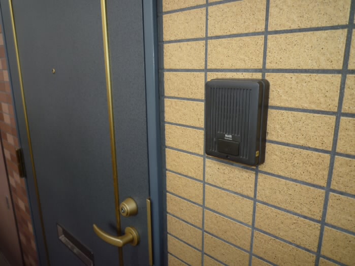 ドアの右側にはインターホンが付いています。